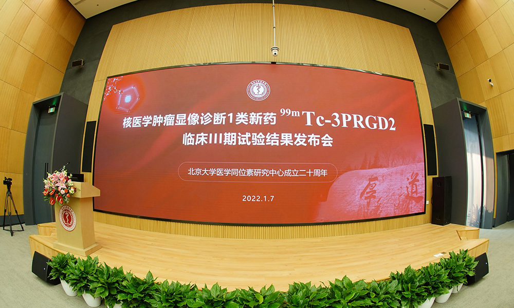 1月7日,中国首个核医学肿瘤显像诊断1类新药99mTc-3PRGD2,也是国际上第一个用于SPECT显像诊断的广谱肿瘤显像剂,临床III期试验结果发布会在北京大学医学部举行。99mTc-3PRGD2的临床试验达到了主要终点和次要终点。国家药监局临床试验批件指出“这是一个全新机制/靶点的药物”。这一药物的研制成功将改变核医学SPECT/CT影像技术不能用于肿瘤诊断、分期和疗效评价的技术现状和常规认知。20年磨一剑,这个1类新药的诞生,见证着北医人扎根祖国大地,服务中国百姓的情怀,也见证着北京大学医学同位素研究中心20年的发展,凝聚着北京大学医学同位素研究中心主任王凡教授及其团队的传承与梦想,更赢得了国内外的关注和期待。