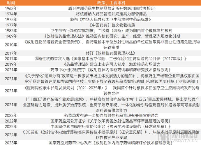 国内核药政策梳理/ 动脉新医药制图